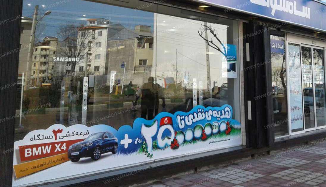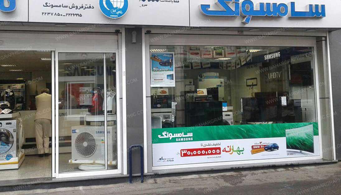 طرح برچسب روی شیشه های فروشگاهطراحی تابلو سردرب مغازه و